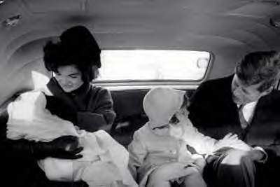 The President and Mrs. Kennedy united with their children on their way to the White House together for the first time, February 1961.