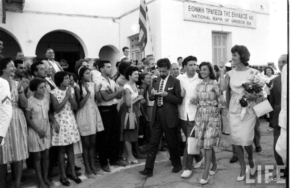 With her husband Aristotle Onassis, the former First Lady toured through the Harland and Wolff shipyard in Belfast, Northern Ireland and greeted admirers waiting to meet her, 1970. (London Daily Express/Getty Images)