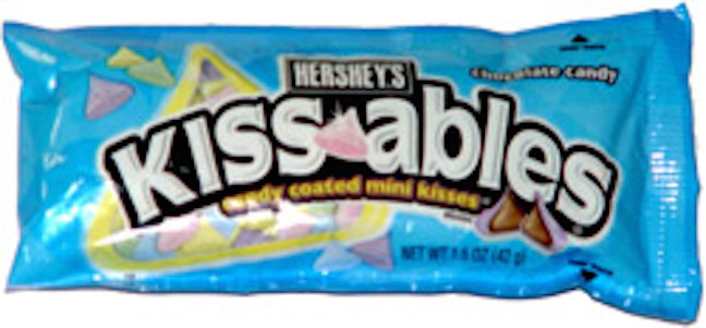 Before even all of its silver-foil was unfolded, the power of memory taste made the legendary Hershey Kiss familiar and lovable. And so the bright lights at corporate decided to jazz it up as an Easter special in 2005. They concocted a springtime candy of milk chocolate (sugar, cocoa butter, chocolate, nonfat milk, milk fat, lactose, soy lecithin, PGPR, and artificial flavors), sugar, red 40, yellow 5, yellow 6, blue 1, and carnauba wax.