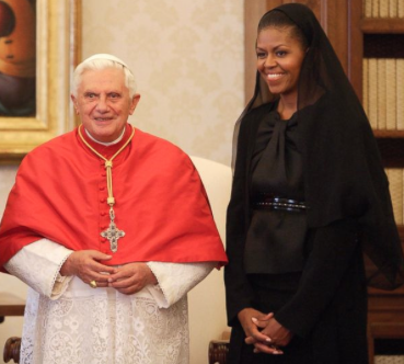 Pope Benedict with Michelle Obama at the Vatican in 2009.